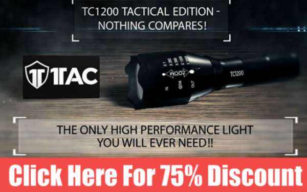 This a time sensitive discounted offer and can end at any time. If you are interested in looking at the offer then hit below and see the full scoop for yourself at Survival Explorer, we have created a full review of the TC1200 tactical flashlight so you can see for yourself what this awesome flashlight can do, oh, and you get 75% discount!.